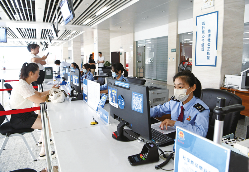6月14日,淮南市政务服务大厅税务窗口,缴费人正在办理“养老保险退费一码通”业务,通过扫码实现养老保险退费全程掌上办。今年以来,淮南市税务局聚焦“高效办成一件事”,会同人社、医保等部门“一窗联办”,将养老保险退费类型、材料清单融入“养老保险退费一码通”二维码,缴费人通过手机扫码即可实现退费申请填写、资料提交、在线签章一次完成,方便淮南市100余万名养老保险参保人员业务办理。