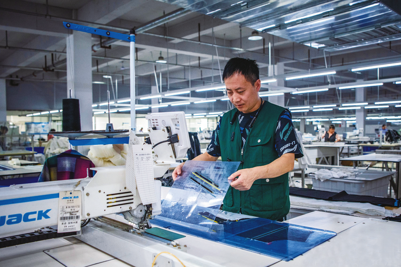 10月8日,在芜湖市繁昌区孙村镇的芜湖乐驼智能制造有限公司生产车间里,工人在服装生产线上生产外贸订单。据了解,繁昌区孙村镇是“安徽服装第一镇”和“全国出口制造服装名镇”。近年来,当地积极优化营商环境,出台相关优惠政策,大力发展服装产业,帮助群众在家门口就业。目前,孙村镇境内的服装及相关配套企业达230余家,已吸收2万余人就近就业。