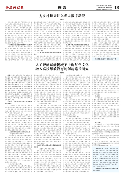 人工智能赋能视域下上海红色文化 融入高校思政教育的创新路径研究