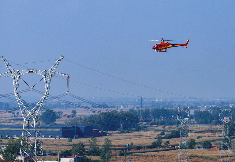 10月9日,在宿州市埇桥区桃园镇境内,直升机正在对500千伏重要输电通道进行空中巡检。国网宿州供电公司联合国网电力空间技术有限公司使用搭载红外热像仪、激光雷达等设备的直升机对境内31处跨越高速、高铁与重要输电通道的500千伏、220千伏、110千伏输电线路及附属设备进行“可视化+数据化”特巡,提升电网运检质效,护航电网安全稳定运行,为区域经济发展提供可靠电力保障。 张闯摄