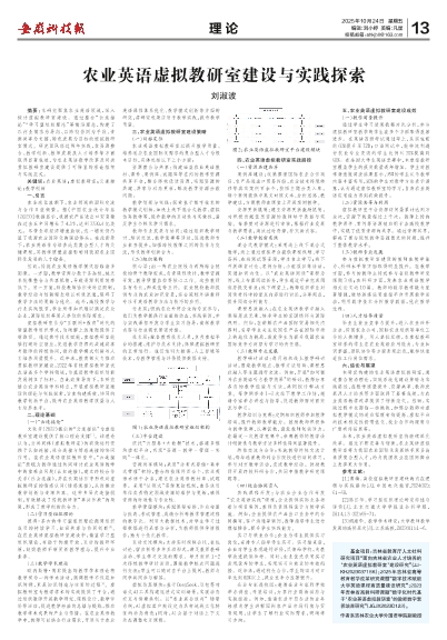 欧内斯特·博耶提出的教学学术理论将教学视为一种学术活动,强调教学不仅是知识传授,更是知识创造与应用的过程[3]。虚拟教研室为教学学术的实践提供了平台,通过组织教师开展教学研究、课程设计、教学评价等活动,促进教学经验的总结与提炼,推动教学学术成果的产生与传播。在农业英语教学中,教师可以结合行业需求,开展关于农业英语课程体系优化、教学模式创新等方面的研究,将研究成果应用于教学实践,提升教学质量。
