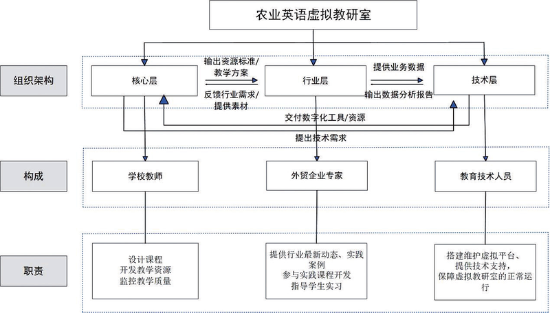 核心层:由一所农业院校与两所综合院校的骨干教师组成,负责课程设计、教学资源开发、教学质量监控等核心工作。这些教师各有专长,形成优势互补。农业院校教师提供专业的农业知识背景,综合院校外语教师专注于英语教学方法与技巧的应用。