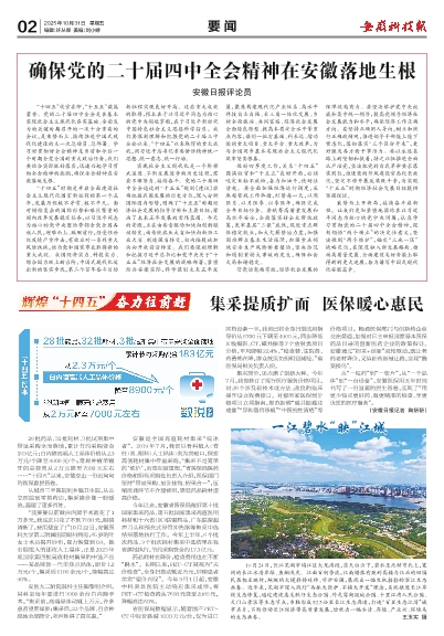 “十四五”收官在即,“十五五”谋篇蓄势。党的二十届四中全会是在基本实现社会主义现代化夯实基础、全面发力的关键时期召开的一次十分重要的会议,是乘势而上、接续推进中国式现代化建设的又一次总动员、总部署。学习好贯彻好全会精神是当前和今后一个时期全党全国的重大政治任务,我们要结合实际抓好落实,迅速兴起学习贯彻全会精神的热潮,确保全会精神在安徽落地生根。