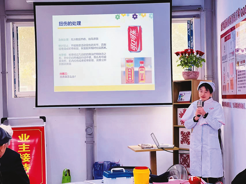 作为志愿服务队的骨干,她充分发挥平台优势,带领团队深入社区、企业、学校及乡村开展服务。她精心策划的志愿服务活动涵盖急救知识普及、慢性病管理、健康生活方式倡导与母婴保健指导等领域,通过专题讲座、义诊服务、居家护理指导与科普展览等形式,有效提升了民众的健康素养。在一次校园义诊中,一名学生在学会心肺复苏后,激动地握住她的手说:“护士老师,我第一次真切感受到医学是守护生命的科学!”这句话让她更加坚信:护理科普不是单向的知识输出,而是点燃健康希望的火种。