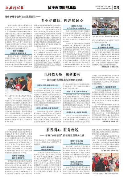 “心理茶馆”志愿服务队开展“长者倾听计划”活动。 “心理茶馆”志愿服务项目由阜阳市心理学会志愿服务队在临泉县单桥镇善桥发起,专注于提供心理疏导、矛盾调解、舆情收集、社会救助等服务。项目以专业化心理服务为核心,累计接待来访案例696例(含儿童青少年危机干预33例、心理疏导439例、社会救助61例),先后获评“全国社会心理服务优秀项目”、省文明办“月评十佳”学雷锋志愿服务先进典型,基层治理模式入选全国乡村振兴创新案例,还斩获2024年度“安徽省最美科技志愿服务项目”称号。