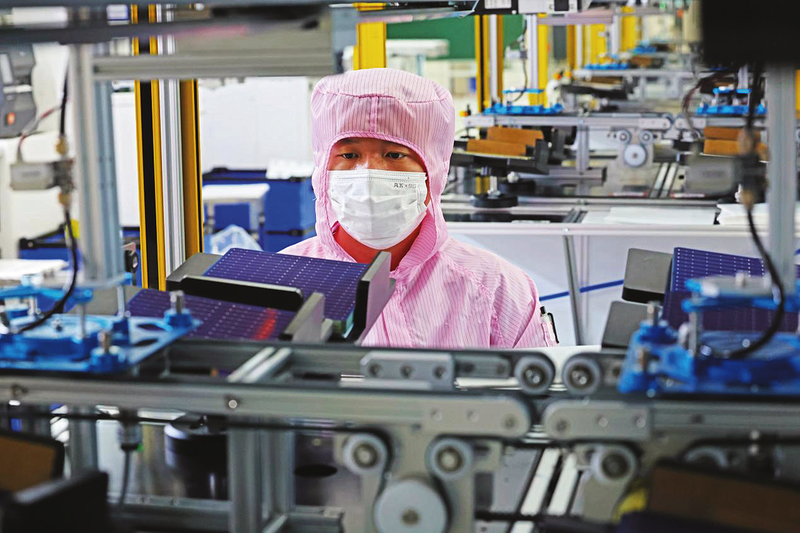 11月21日,位于马鞍山经济技术开发区的正奇光能科技有限公司数字化车间内,工人与自动化机器人正协同作业,加紧生产用于出口的TOP-Con高效太阳能电池片。
