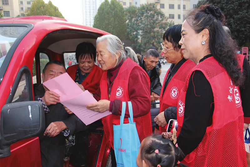 志愿者们为社区老人科普消防知识。 在这里,没有高大上的科技,只有一双双布满皱纹却温暖的手,一次次俯身,一次次叩响孤独的门扉。