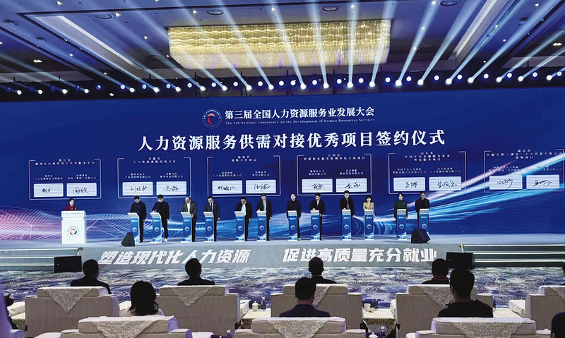 第三届全国人力资源服务业发展大会项目集中签约。 本报讯(全媒体记者 朱晓平)11月29日,第三届全国人力资源服务业发展大会在武汉圆满落幕。闭幕式上,滁州市辰才产业园管理有限公司与安徽几何服务外包有限公司合作的安徽省人力资源战略投资合作项目,作为安徽省唯一入选项目完成重点成果签约展示,标志着滁州人力资源服务领域的创新实践获国家级权威认可。