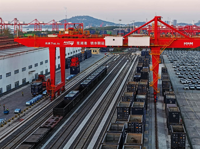 芜湖港朱家桥港区多式联运专用线直连铁路芜湖东站,并与芜宁、芜铜、皖赣、宣杭等多条铁路干线交汇,区位优势突出。它的畅通运营进一步优化了沿江地区铁水公多式联运网络,助力运输结构调整,对推动芜湖及周边区域深度融入长三角一体化发展具有重要作用。 王玉实 摄