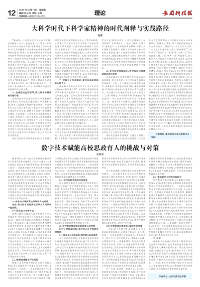 数智化时代高校思政课弘扬科学家精神的三重维度