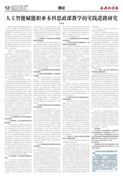 基金项目:2025年度河北省思想政治工作研究课题——人工智能赋能职业本科思政课教学的内在机理和实践路径研究,立项编号:HBSZKT-2025037,课题类型:指导课题;2025年度河北省社会科学基金项目——职业本科院校思政课教学模式创新研究,项目批准号:HB25ML015,项目类别年度项目-一般项目。