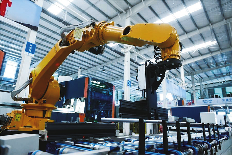 12月22日,在位于阜阳市经开区的安徽磊安新材料科技有限公司智能生产线上,机器人手臂投入铝合金门窗加工生产,赶制订单。连日来,该企业利用上马的全省首台(套)智能生产线,加大铝合金门窗加工生产订单。王彪 摄