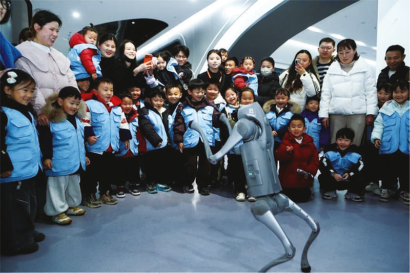 近日,蒙城县科技馆,一群小朋友在家长和老师的陪同下,通过参观、体验科普展品以及与机器狗互动等活动,感受科技魅力,学习科普知识。据悉,蒙城县科技近期推出了“科技+年味+文化”的科普嘉年华活动,通过水力实验、科普灯谜、科学闯关、限定实验工坊等活动,让青少年沉浸式探索科学奥秘。 胡卫国 摄