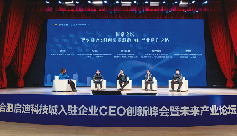 在主旨发言环节,与会嘉宾就科技生态构建与金融支持分享了见解。启迪新基建集团总裁、安徽启迪执行总裁刘润成表示,合肥启迪科技城将持续扮演“创新土壤培育者”与“产业生态连接者”的角色,系统构建从技术孵化到产业赋能的完整链条。中国农业银行合肥分行副行长梁肥根在发言中强调,金融机构应积极支撑科技创新与产业升级,以更开放的姿态和创新产品助力科技成果转化,为合肥建设科创名城注入金融动能。