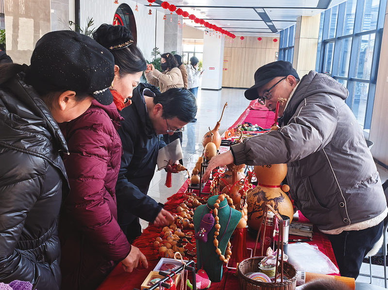 文艺演出落幕,民俗展示与写春联送福环节接力升温。民俗展区内,庐州古法制香、葫芦烙画、剪纸、庐州绳记等非遗传承人现场展示传统技艺。剪纸艺人指尖翻飞,马年生肖、吉祥纹样等作品栩栩如生;年画创作区里,色彩艳丽的福娃、奔马图案跃然纸上,兼具观赏性与寓意美;葫芦烙花摊位前,精雕细琢的葫芦摆件、挂件琳琅满目,引得市民纷纷驻足观赏、选购。