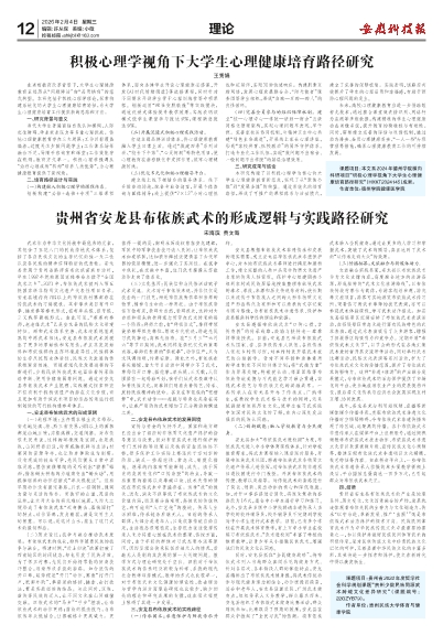 贵州省安龙县布依族武术的形成逻辑与实践路径研究