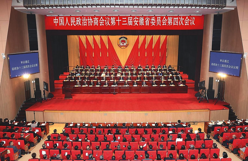 2月4日上午,中国人民政治协商会议第十三届安徽省委员会第四次会议在安徽大剧院隆重开幕。 安徽日报记者杨竹许昊摄 2月4日上午,中国人民政治协商会议第十三届安徽省委员会第四次会议在安徽大剧院隆重开幕。