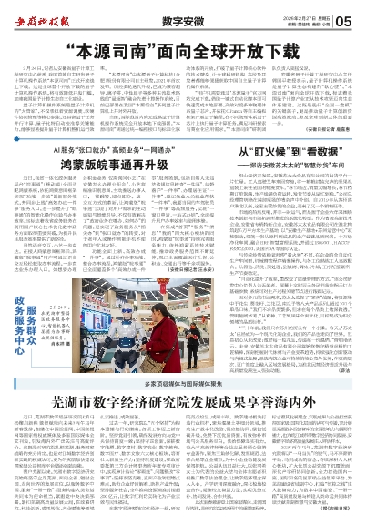 近日,芜湖市数字经济研究院《策马扬鞭启新程数智赋能向未来》丙午马年新春致辞,相继在中国经营网、中国商报网等国家级权威媒体及多家国际媒体全文刊发,引发海内外广泛关注与高度评价。这既是对研究院扎根芜湖、服务国家战略的充分肯定,也是对江城数字经济创新实践的权威认可,更为研究院加快建设国家级公益智库平台增添强劲动能。