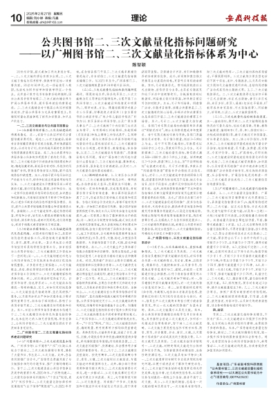 公共图书馆二、三次文献量化指标问题研究 ——以广州图书馆二、三次文献量化指标体系为中心