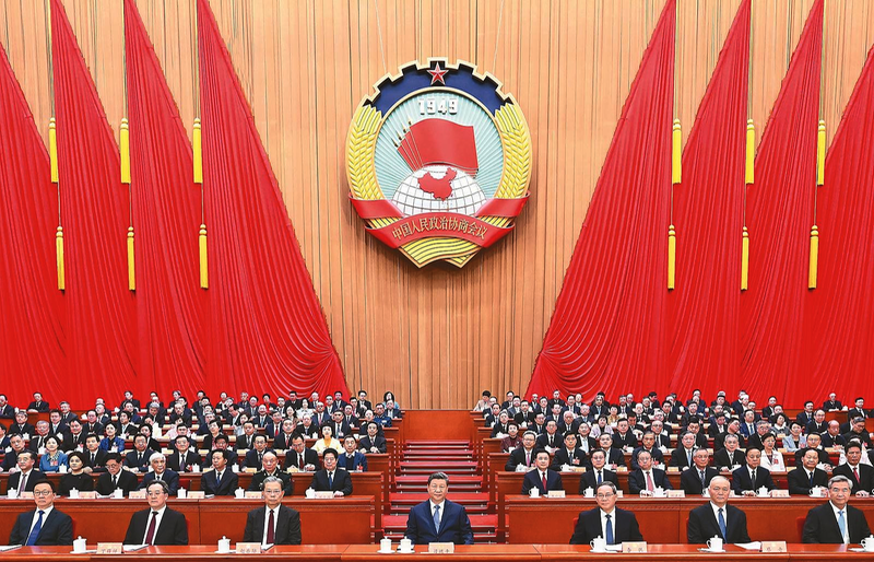 三月的北京,春启华章。人民大会堂大礼堂灯光璀璨,气氛隆重热烈。中国人民政治协商会议会徽悬挂在主席台正中,十面鲜艳的红旗分列两侧。