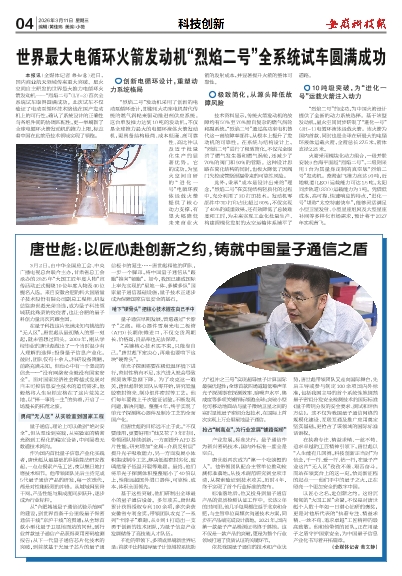 唐世彪:以匠心赴创新之约,铸就中国量子通信之盾