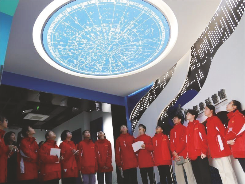 3月20日,在安徽省合肥市气象科普馆,来自合肥市第三十八中学北校的同学们在学习气象知识。当日,该校组织开展“探索气象奥秘感受科学魅力”主题活动,迎接3月23日“世界气象日”的到来。 闻超 摄