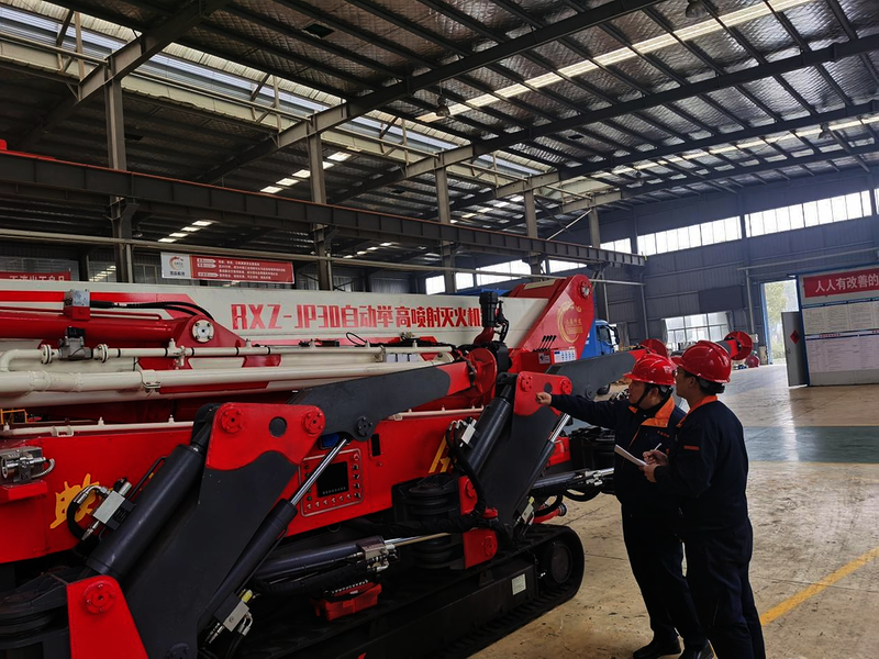 由浩淼安防自主研发的自动举高喷射灭火机器人。