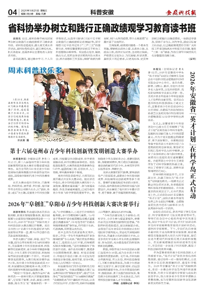 作为安徽省培育青少年科技创新人才的重要平台,“英才计划”依托全省优质科教资源,通过导师一对一指导的模式,让优秀青少年近距离接触科研、感受科学魅力。2026年安徽省“英才计划”的顺利启动,将进一步整合科学岛及各地市科创教育资源,为青少年搭建科学探索与成长的优质平台,助力更多青少年在科学道路上勇攀高峰,也为安徽科技创新事业发展储备坚实的新生力量。