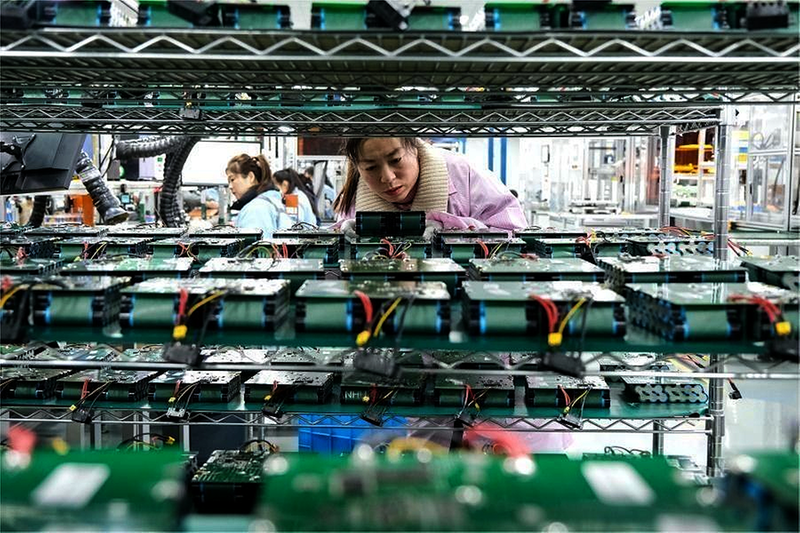3月17日,安徽省蚌埠市五河县一家锂电池生产企业,工人在生产电池产品。近年来,安徽省蚌埠市五河县扎实推进新型能源体系建设,培育新质生产力,推进全县锂电企业的数字化与智能化改造进程。