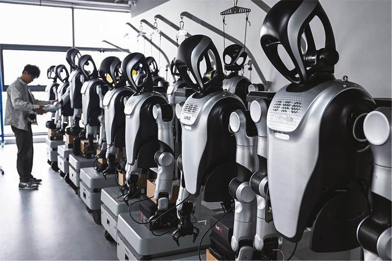 4月13日,在合肥市具身智能机器人数据采集预训练场,训练员在教一台人形机器人进行擦拭餐桌训练。目前,合肥市拥有具身智能产业链上下游企业共190家,集聚企业或高校院所智能机器人相关研发平台40家。