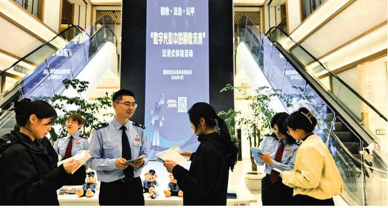 在第35个全国税收宣传月期间,国家税务总局寿县税务局将税收宣传课堂搬进了寿县二十四节气馆,开展沉浸式体验活动。 梁晓龙摄 第35个全国税收宣传月期间,国家税务总局寿县税务局将税收宣传课堂搬进了新入选联合国教科文组织创意中心示范案例的寿县二十四节气馆,一场名为“数字光影中的税收未来”的沉浸式体验活动火热开启,为这座历史文化名城注入满满的“科技税感”。