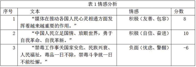 下一步使用LIWC工具,对2012年11月至2024年6月期间的习主席话语语料,按月份为单位,分别提取积极情感词和消极情感词的百分比,结果发现,2024年1月的语料中积极情感词和消极情感词比例的差值是1.2,是差值最大的月份,最具有代表性。将该月份含有“人民”节点词的话语语料和以下指令输入 GPT:“分析文本的情感。在分析过程中,充分考虑语境,并根据-10(非常负面)至 10(非常正面)的标准进行评分。结果应以三列展示,第一列为文本,第二列为情感,第三列为分数。第二列的情感须明确指出具体的情感类型”。表1展示的是3个典型的示例。