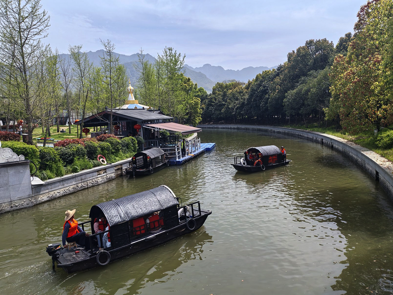 仲春四月,春和景明,游客在九华山风景区里坐在乌篷船游览,目光所及之处皆是江南春日流动的诗情画意,满眼葱茏尽显生机盎然,自由而松弛的感受迅速拉满,彰显水上休闲慢游的快乐时光,令人流连忘返。近年来,九华山风景区不断丰富和创新文旅体验项目,为来山游客开启沉浸式之旅,别样的游山玩水成为游客在该景区的新选择,全方位感受山水之间的九华魅力。 通讯员王安民 摄