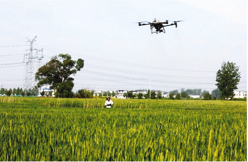 4月19日,在阜阳市颍东区新华街道一处高标准农田里,农机手操作植保无人机正在开展“一喷三防”作业。 当前正值小麦抽穗扬花关键期,颍东区农业农村部门采取“见花打药、遇雨再喷”“统防统治”等技术措施,对小麦进行防病虫、防干热风、防倒伏等“一喷三防”作业,确保夏粮丰产丰收。