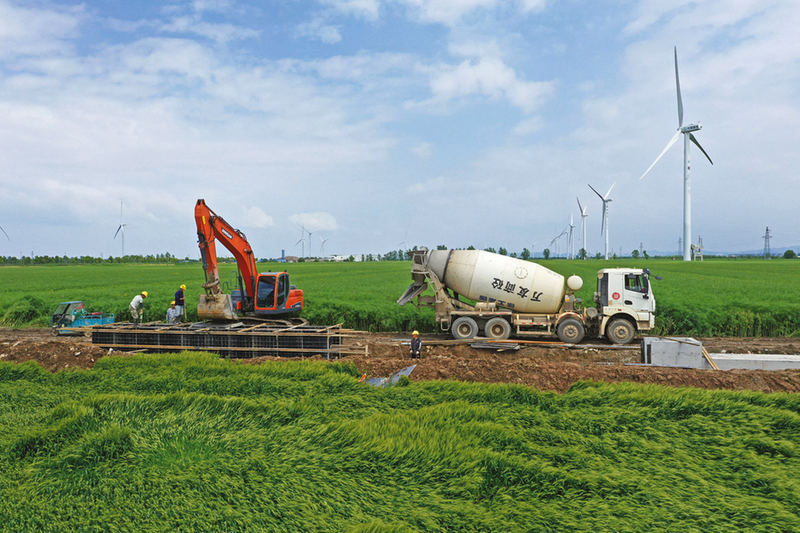 4月24日,安徽省宿松县省属农垦华阳河农场,施工人员在浇筑矩形灌渠。近年来,华阳河农场把节水灌溉作为推动粮食稳产增收的重要举措,通过土地平整、沟渠改造、排涝疏浚等工程建设,完善农田基础设施,提升耕地质量,增强农业防灾减灾能力,筑牢粮食生产的根基。